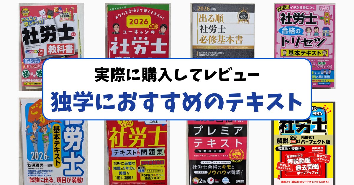 【実機レビュー】人気の社労士独学テキスト8冊を徹底検証