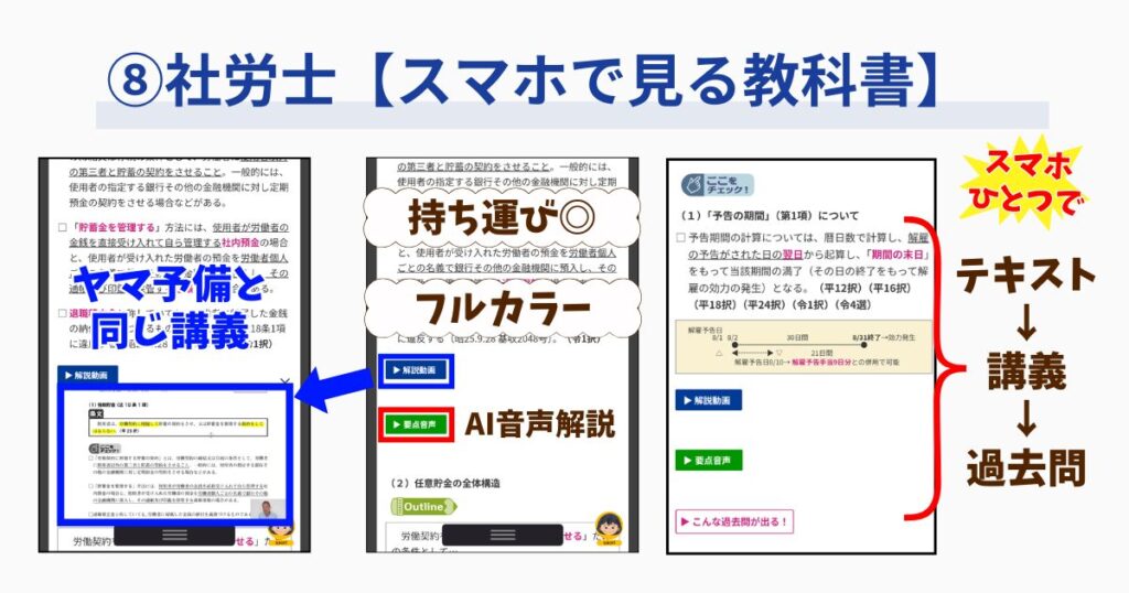 \ スマホ1つで社労士合格!/