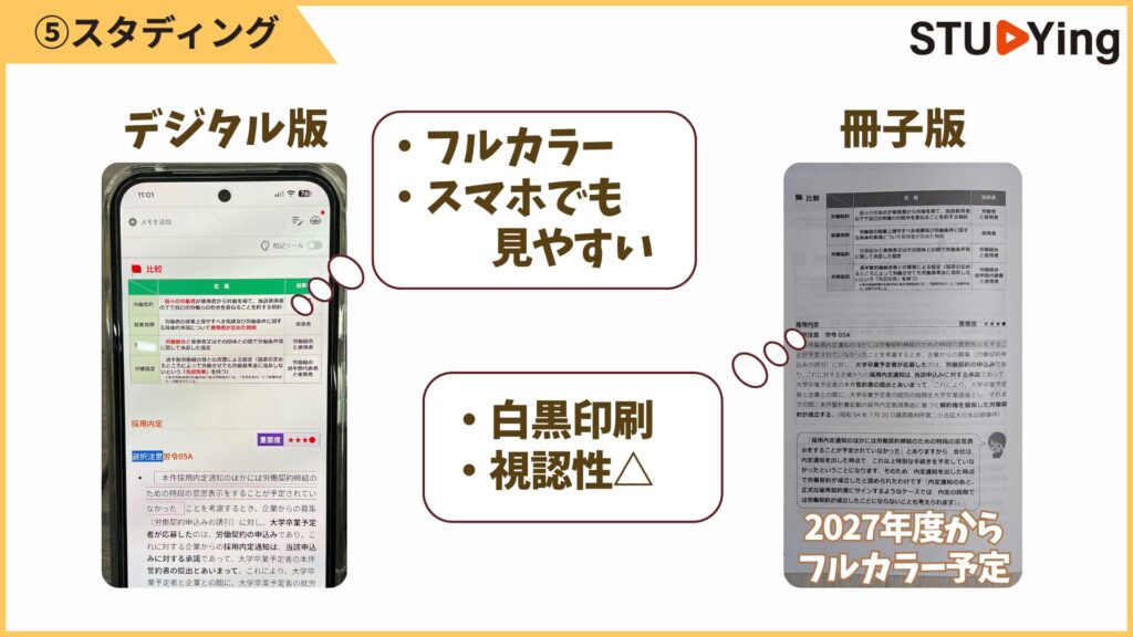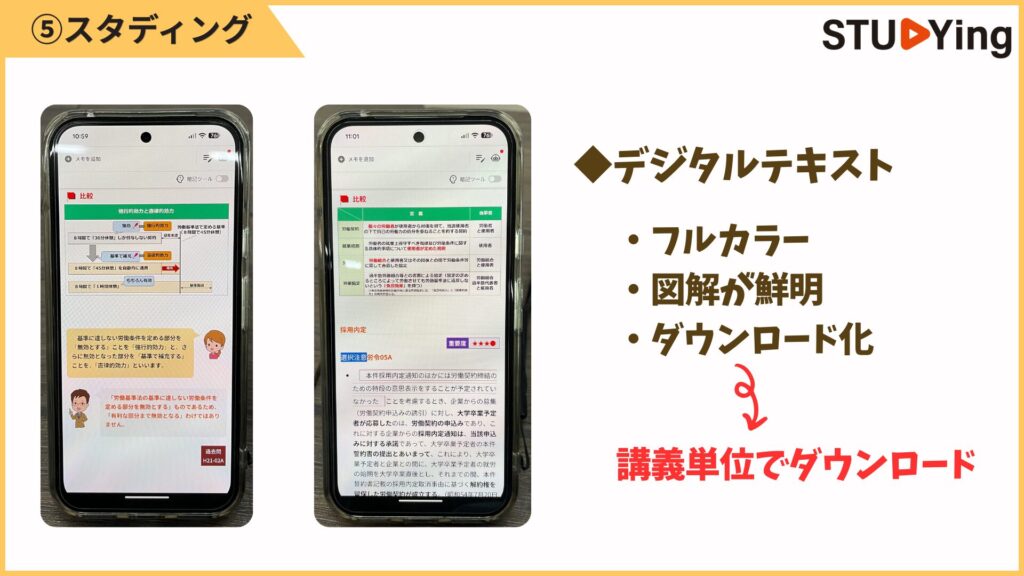 デジタルはフルカラーで、講義スライドと同じ内容を確認できます。